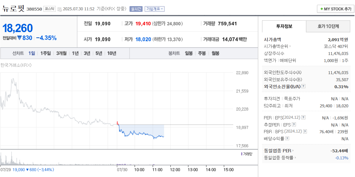 만약 여러분이 고위험-고수익 기술주에 관심이 있고, 중장기적으로 성장주에 투자하고자 한다면, 뉴로핏은 분명 주의 깊게 지켜볼 가치가 있는 종목입니다. 하지만 섣부른 단기 매수보다는 **분할 매수와 시장 모니터링**이 더욱 현명한 전략이 될 수 있습니다.
