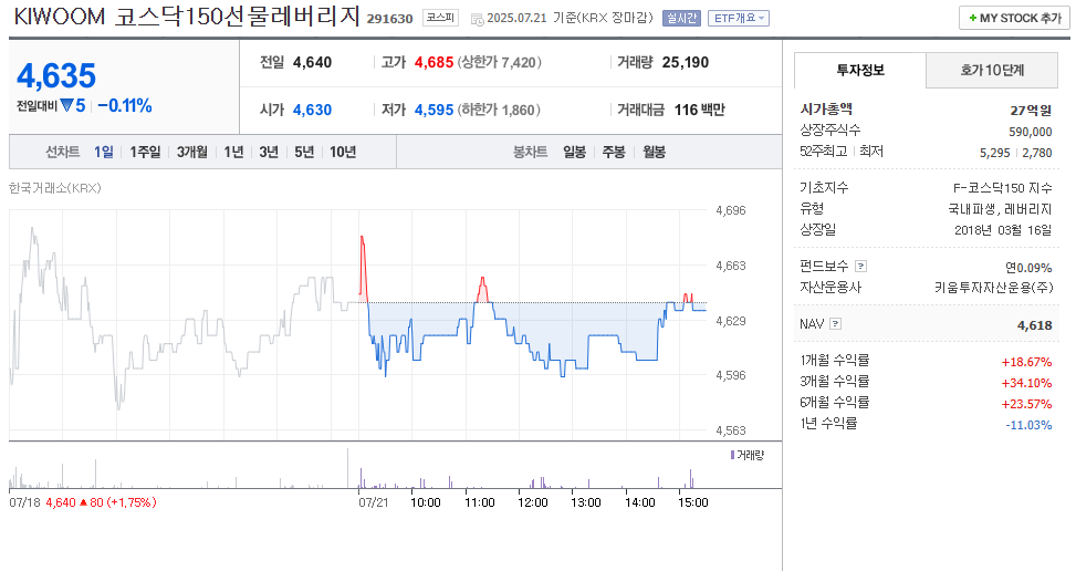 | ETF명 | KIWOOM 코스닥150선물레버리지 |